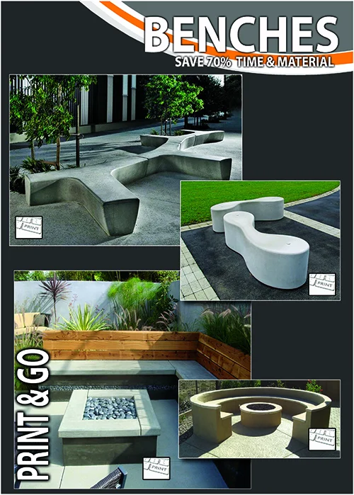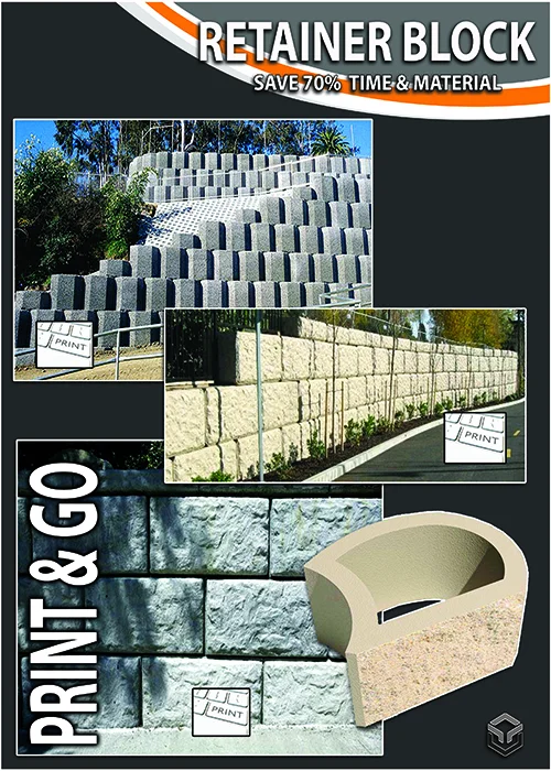 Concrete printing is possible with the construction of a large 3D printer capable of printing large scale structures, from spas and barbeques to homes and larger commercial buildings, without the need of traditional framing, forming or blocks. MudBots offers printers from 10' x 10' up to 100' x 100'.